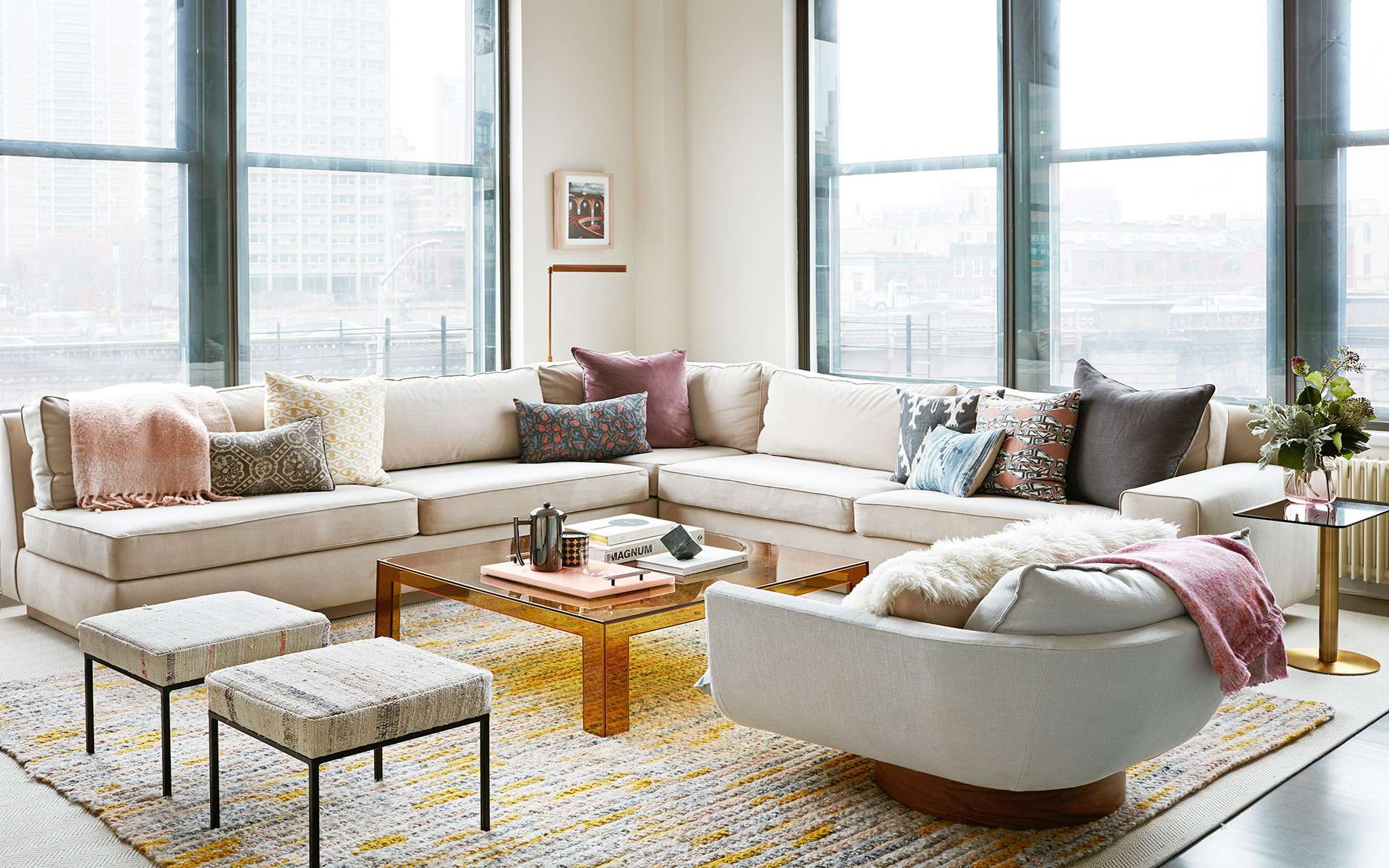 Việc lựa chọn những gối ôm trang trí cũng rất tuyệt, những chiếc gối êm ái vừa đem lại cảm giác thoải mái, thư giãn lại có thể lấp đi những khoảng trống trên chiếc sô pha rộng và dài của căn phòng.