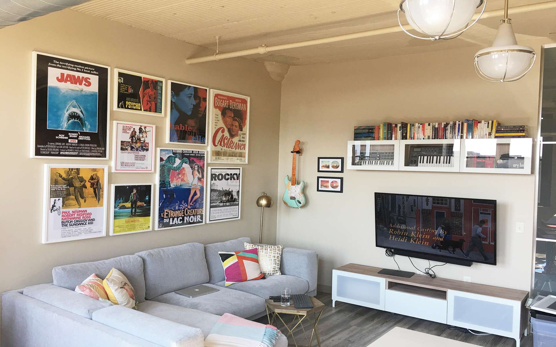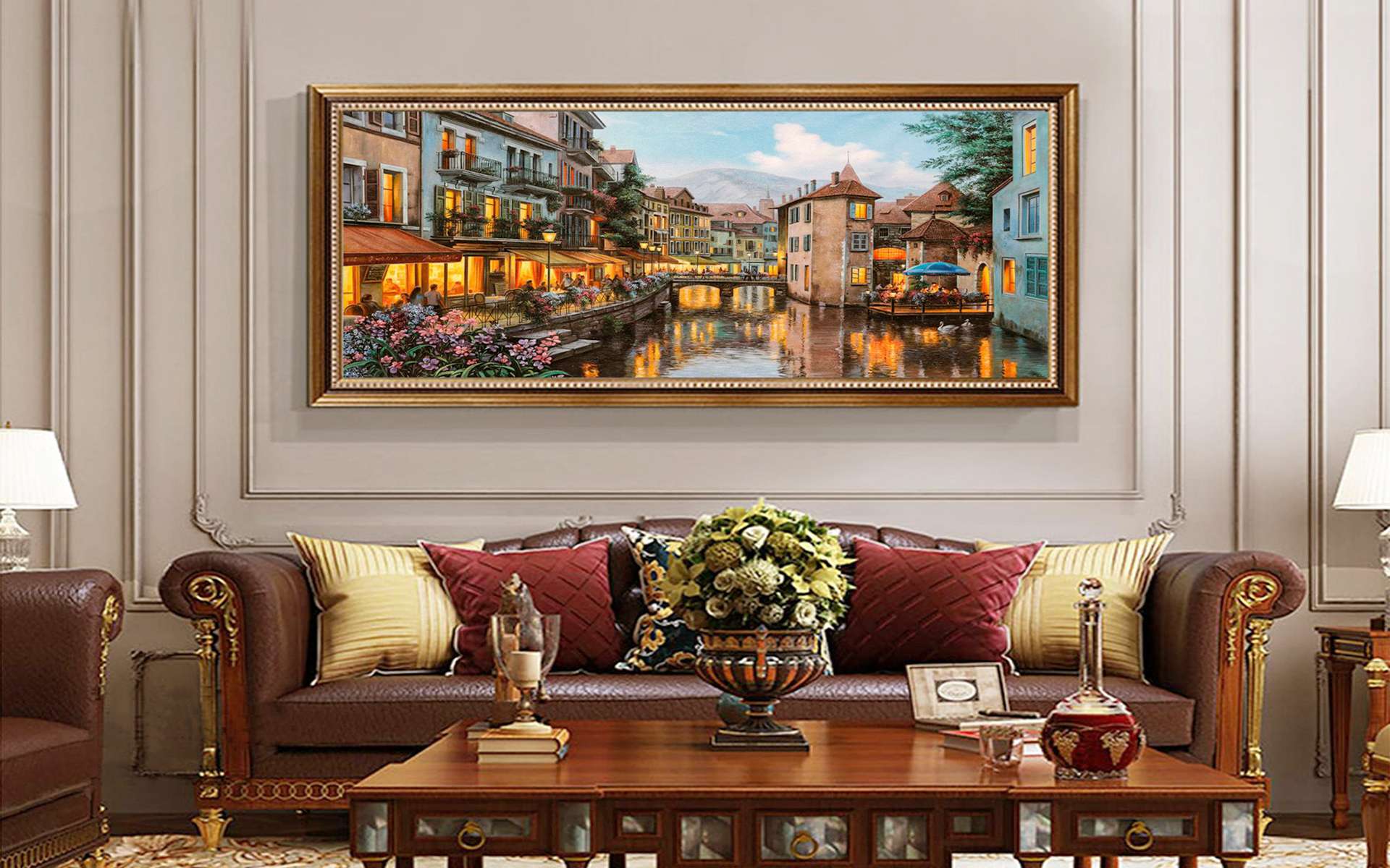 Việc treo tranh tường sẽ giúp lấp đi những khoảng trống trên tường, không những thế, bạn còn có thể lắp đặt hệ thống đèn chiếu để vừa trò chuyện vừa ngắm những bức tranh tuyệt đẹp.