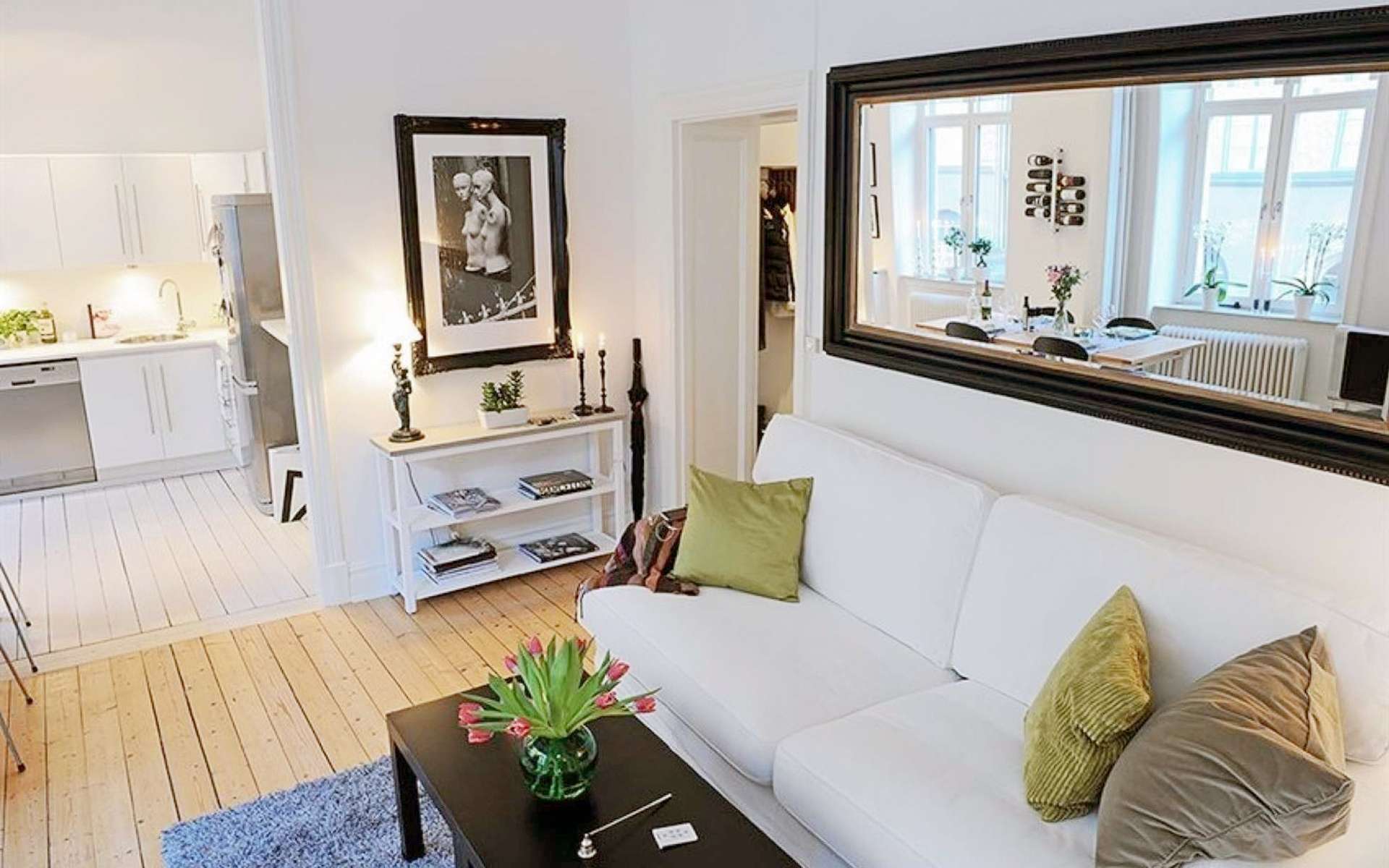 Gương không những là vật dụng nội thất bình thường mà nó còn làm đẹp thêm cho ngôi nhà và trở thành điểm nhấn của phòng khách. Không chỉ làm đẹp, gương còn phản chiếu ánh sáng giúp không gian trở nên rộng rãi và thoải mái hơn. Ngoài ra, gương còn biến bức tường phòng khách vô vị nhà bạn trở nên đầy sức sống.