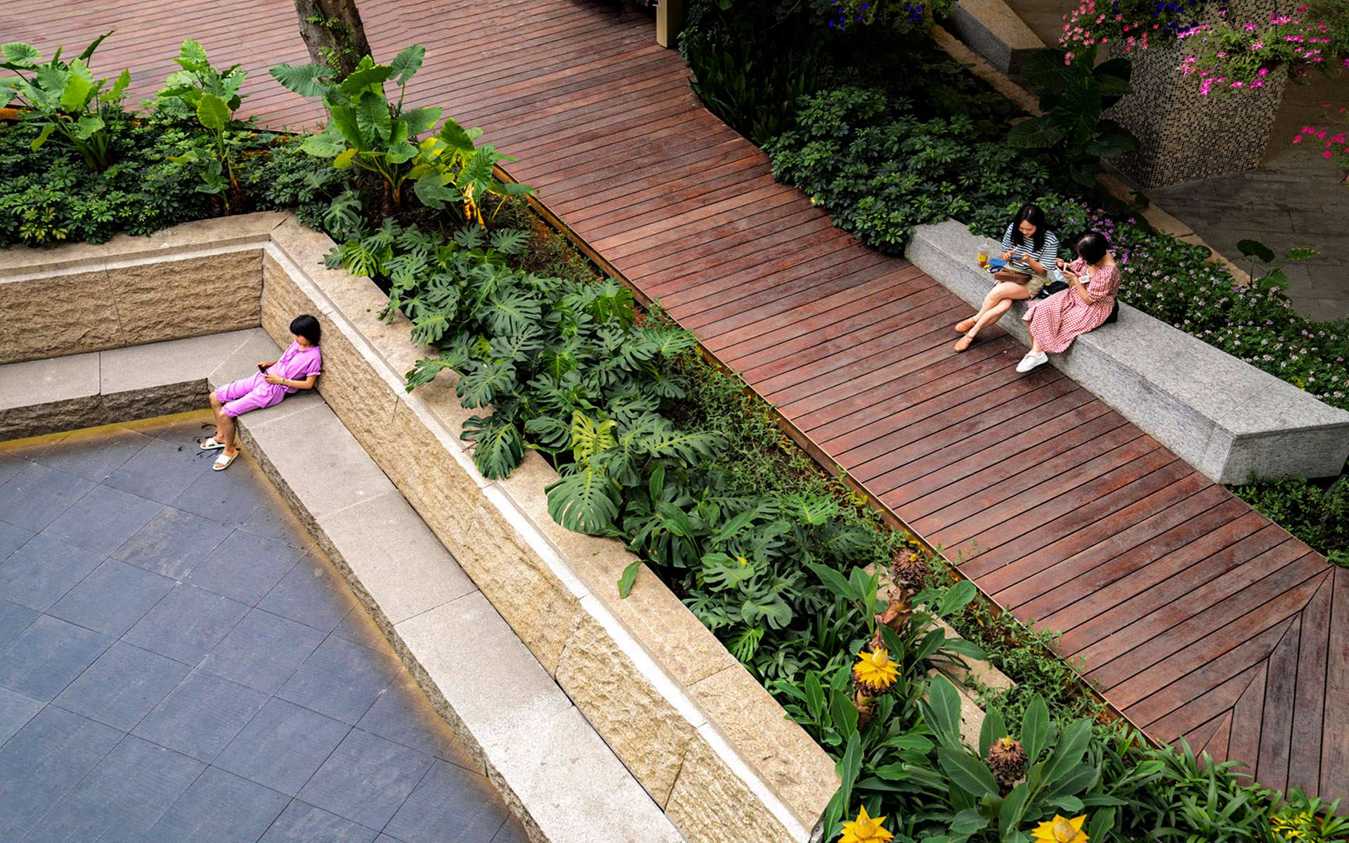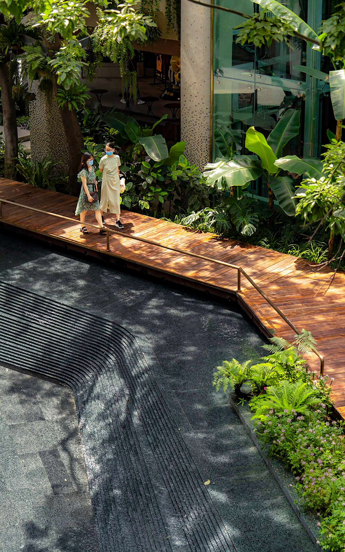 Tuy nhiên đối với BWLA, họ mong muốn thay đổi khái niệm 'tuyến phố thương mại” thành tuyến phố “giao lưu”. Sự giao thoa kết nối theo tầng bậc tạo được không gian giao lưu nhưng vẫn không mất đi tính thương mại vốn có, lại tạo ra không gian thoải mái, gần gũi nhất cho mọi người với thiên nhiên.