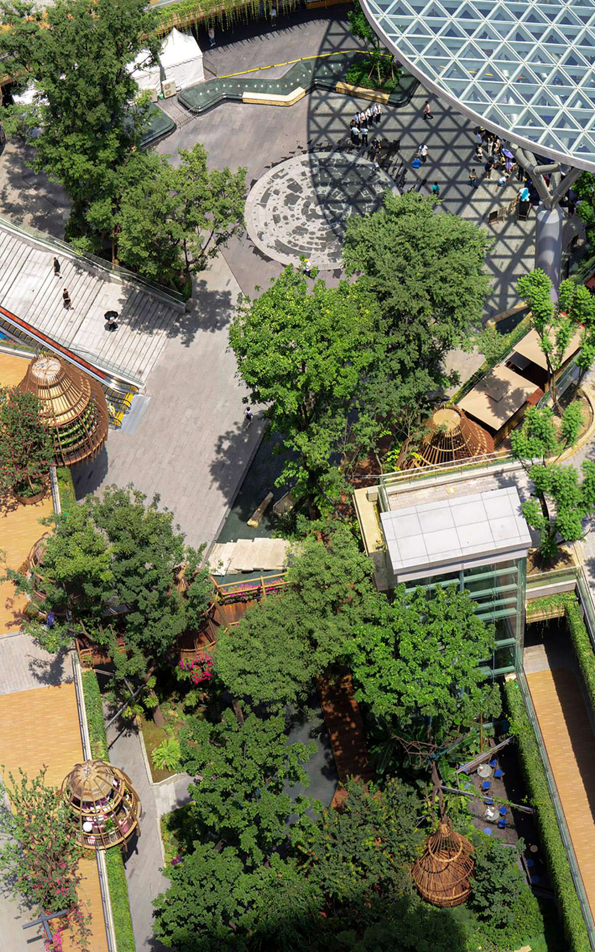 Dự án nằm tại số 5 phố Tian fu, khu công nghệ cao của Thành Đô. Có ba không gian cảnh quan từ tầng hầm lên tầng hai. Tổng diện tích dự án khoảng 166.000 m² và diện tích cảnh quan khoảng 34.000 m². Các doanh nghiệp bán lẻ, siêu thị, rạp chiếu phim, căn hộ và khách sạn đều được tập hợp thành một tổ hợp thương mại riêng biệt.