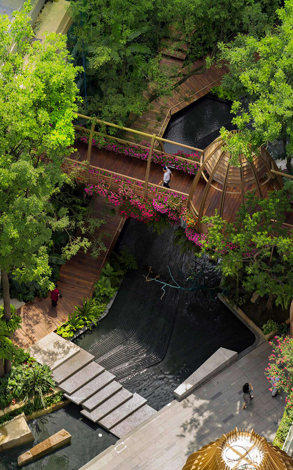 Dựa trên nhu cầu mọi người, BWLA đã liên hệ giữa kiến trúc cảnh quan và hoạt động thương mại. Họ đã lên ý tưởng bằng cách ưu tiên cảnh quan thay vì kinh doanh, vốn được thiết kế để thu hút mọi người lúc đầu và sau đó nhường chỗ cho các doanh nghiệp.