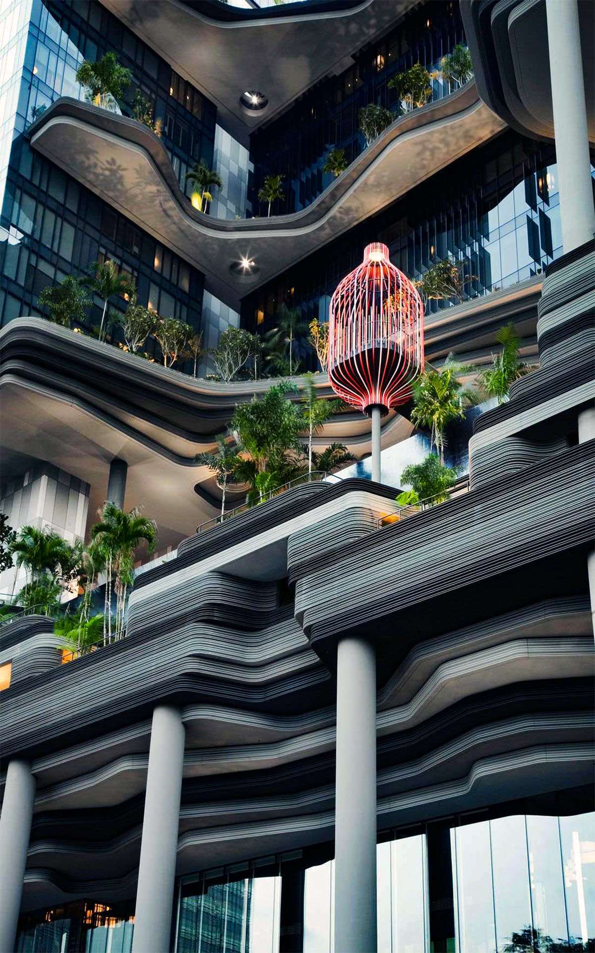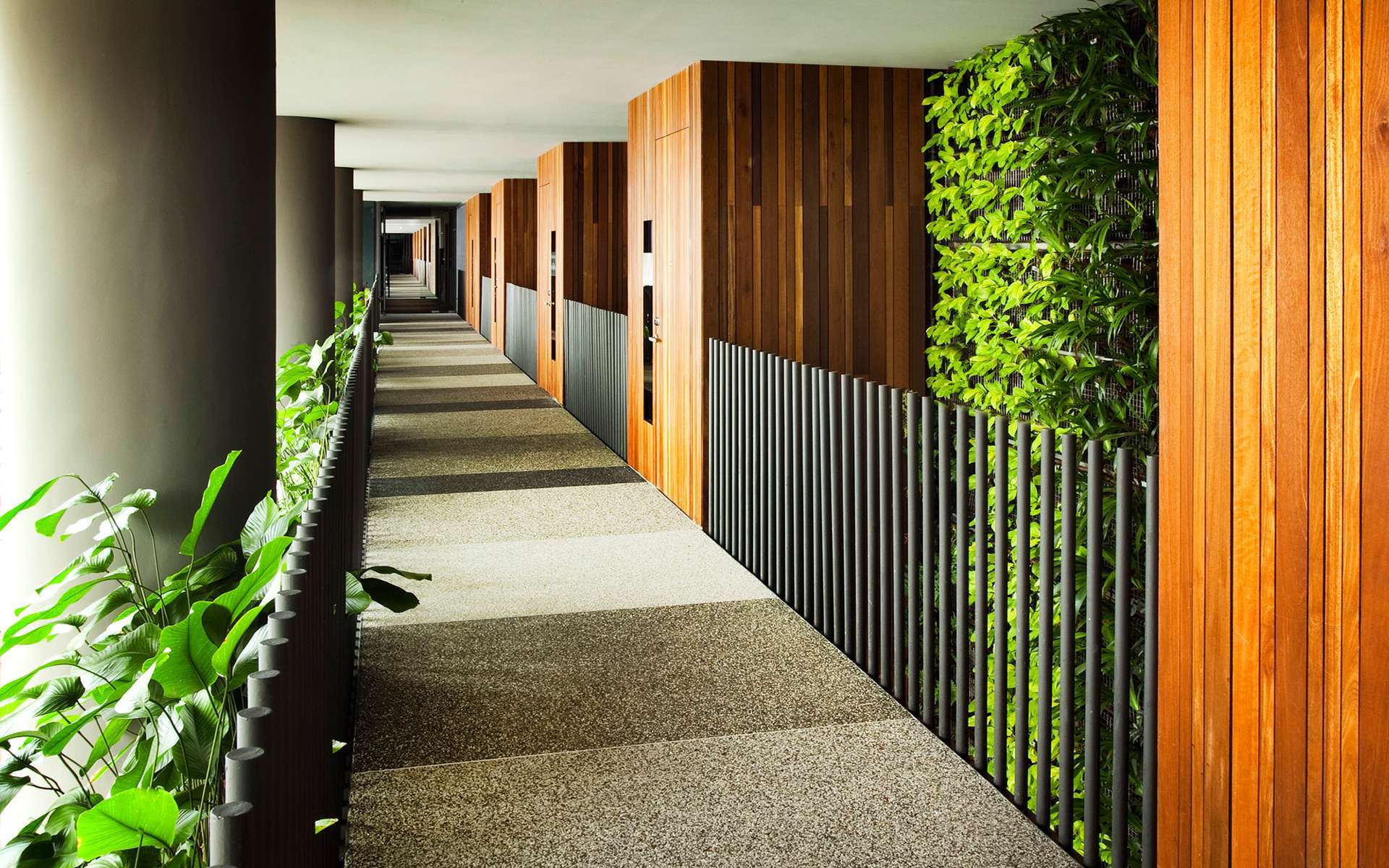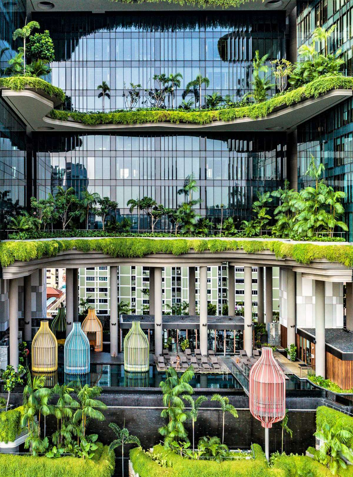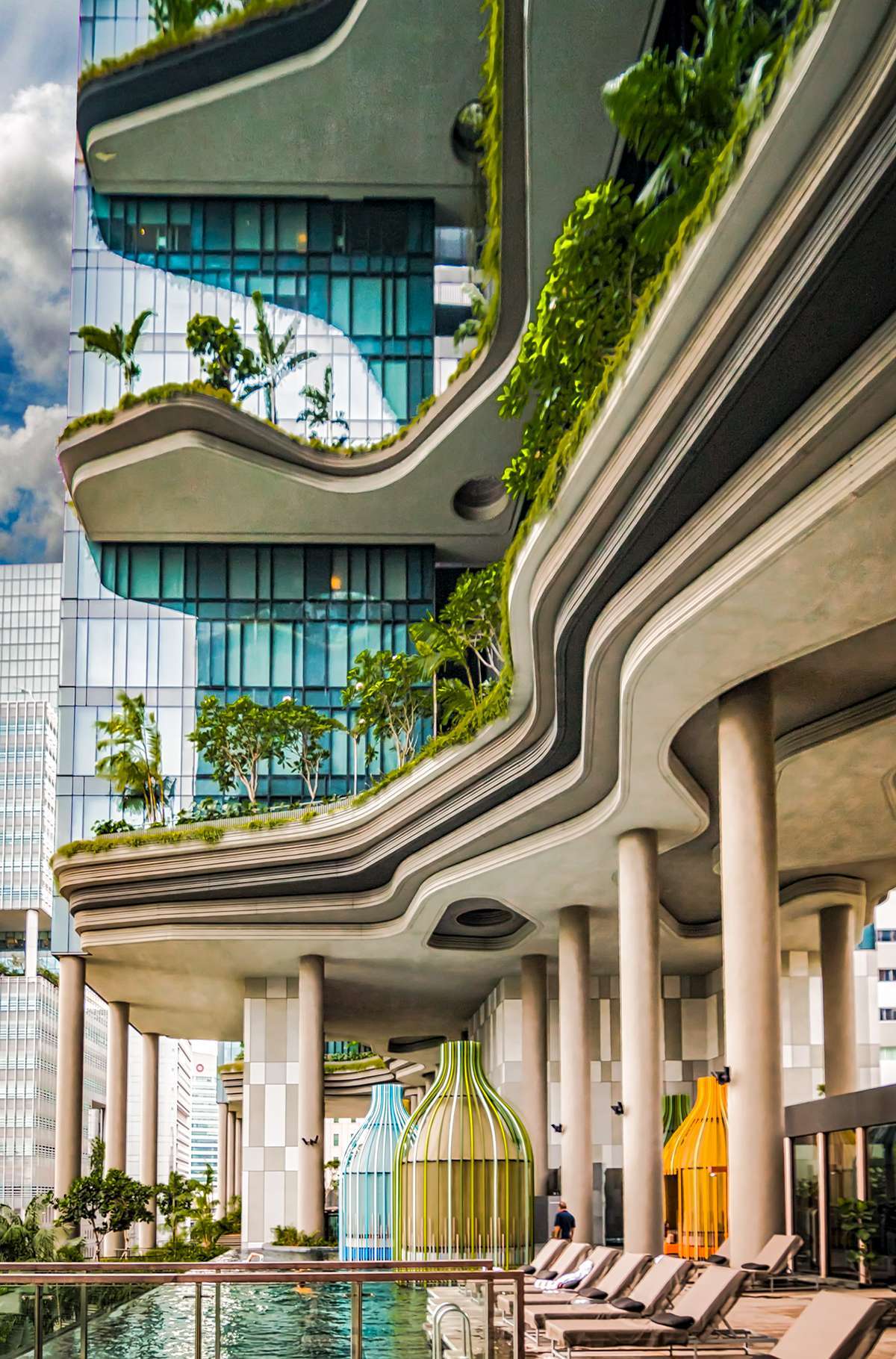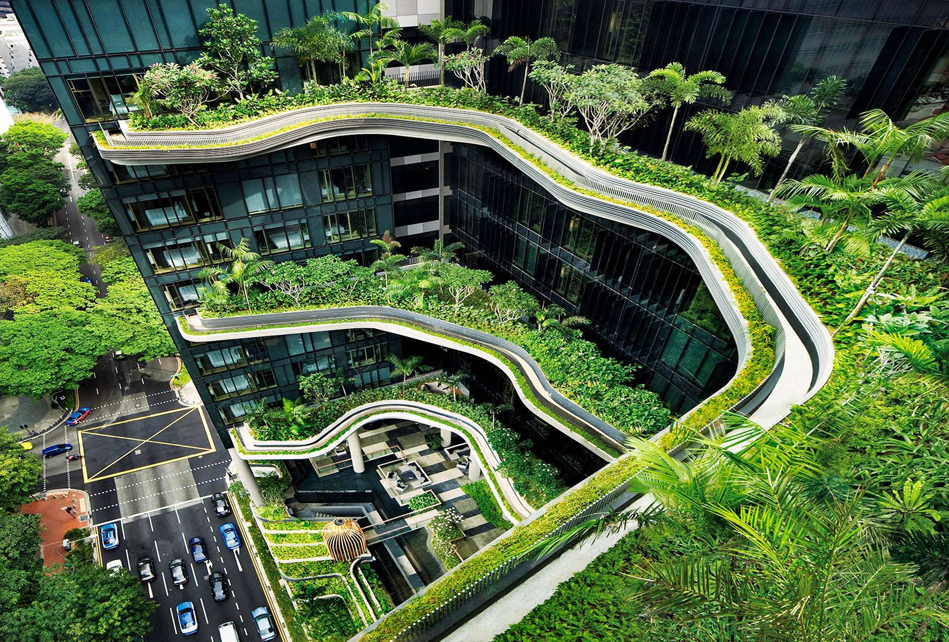 Công trình độc đáo này được thiết kế bởi WOHA, một công ty kiến trúc nổi tiếng của Singapore. Thay vì xây dựng kiểu nhà hộp ốp kính như các khách sạn thông thường, công trình này được xây dưới dạng bậc thang để tận dụng tối đa không gian mở. Hành lang dài tới 300m cũng là nơi trồng nhiều loại cây từ cây dây leo, cây lá cọ, nối tiếp từ mặt đất lên tới sân thượng.