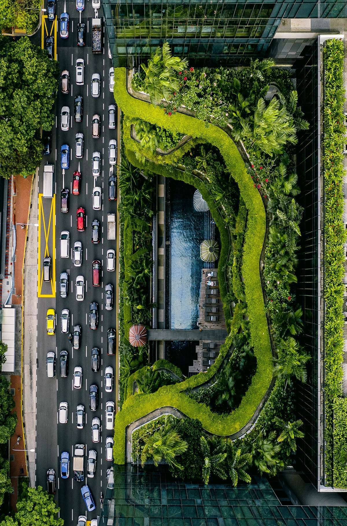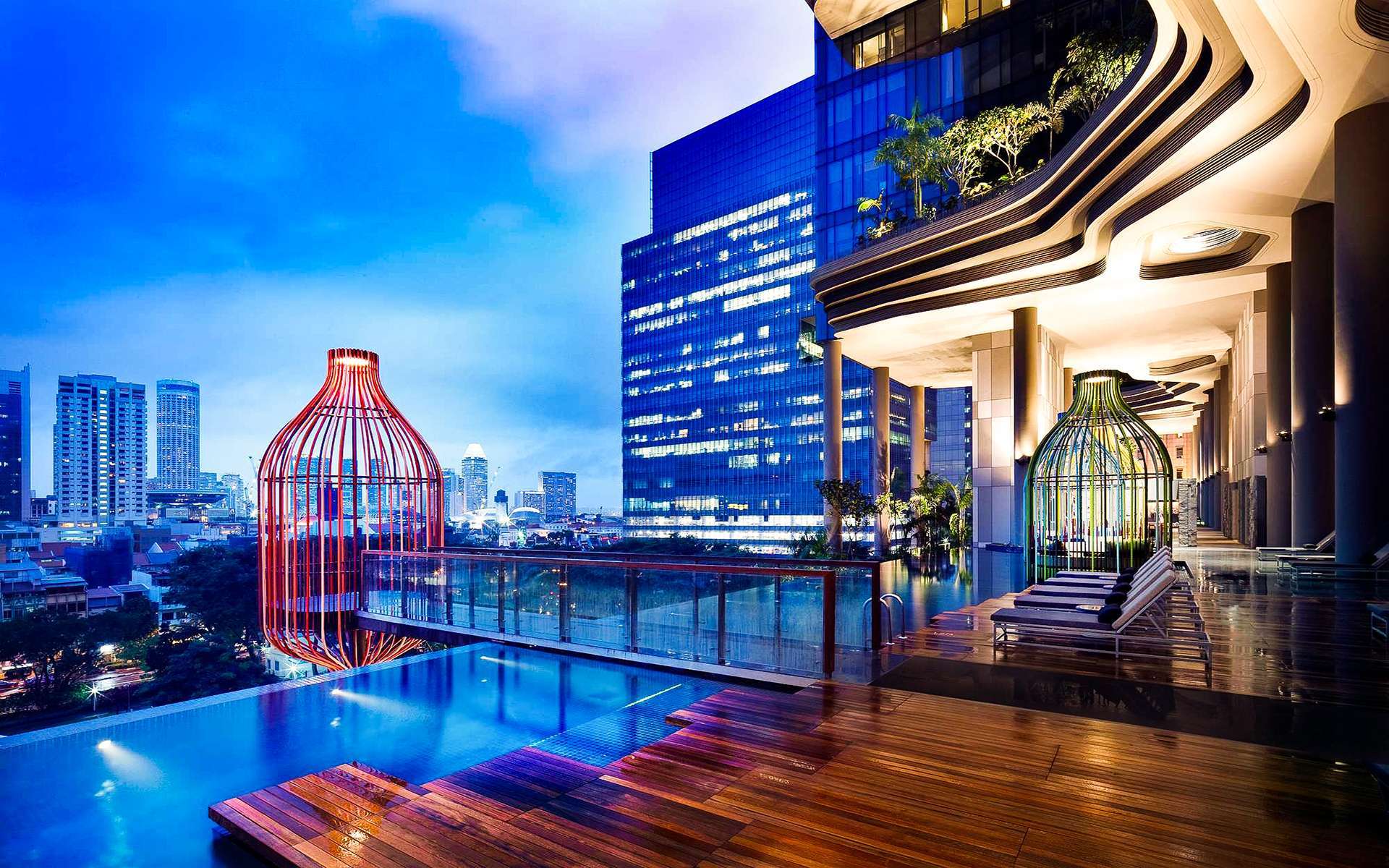Khách sạn xanh ngắt độc đáo ở Singapore được các kiến trúc sư thiết kế vô cùng độc đáo với phần lớn kiến trúc là khu vườn trên cao, hồ bơi, thác nước và rất nhiều cây xanh được trồng dưới dạng bậc thang. Parkroyal on Pickering ở Singapore chính là điểm dừng chân lý tưởng dành cho những ai yêu và muốn hòa mình vào thiên nhiên tươi đẹp.