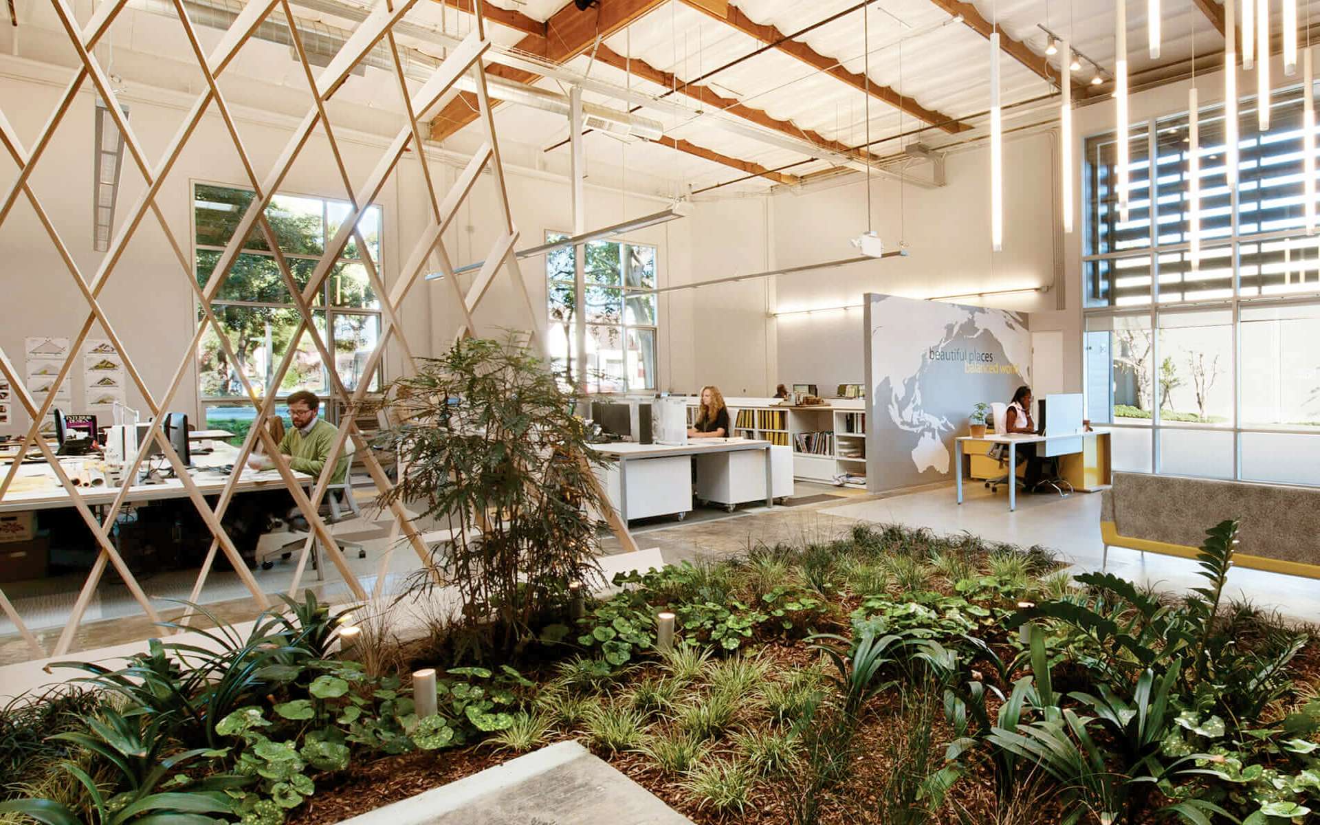 Sân vườn văn phòng là không gian đưa các yếu tố thiên nhiên vào văn phòng bằng cách sắp xếp hợp lý để tạo sự hài hòa, tươi mới và góp phần thanh lọc không khí. Hiện nay, thiết kế sân vườn văn phòng được rất nhiều chủ doanh nghiệp lựa chọn để làm nổi bật cho văn phòng làm việc.