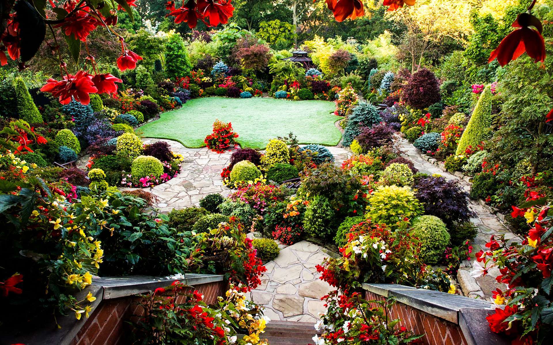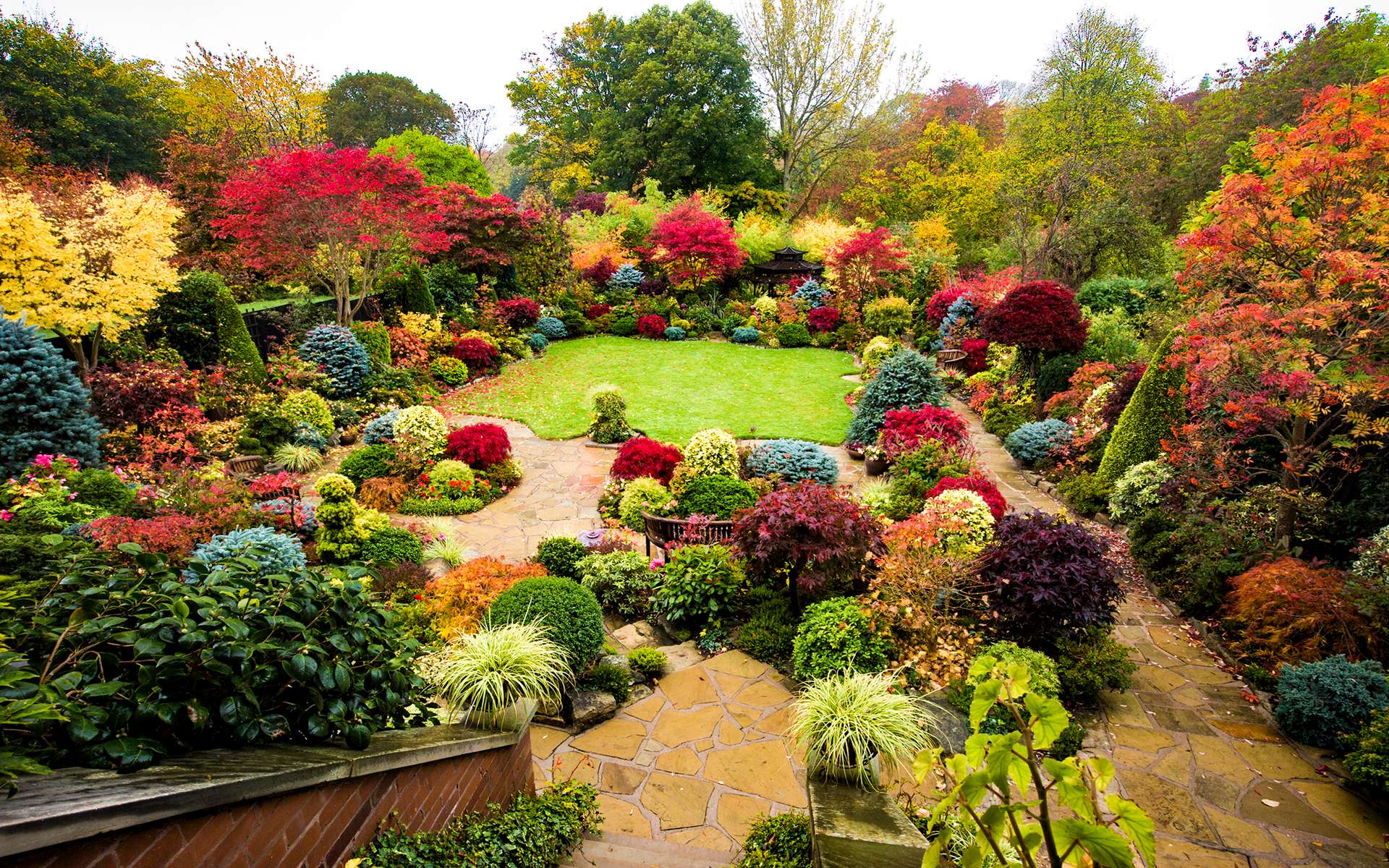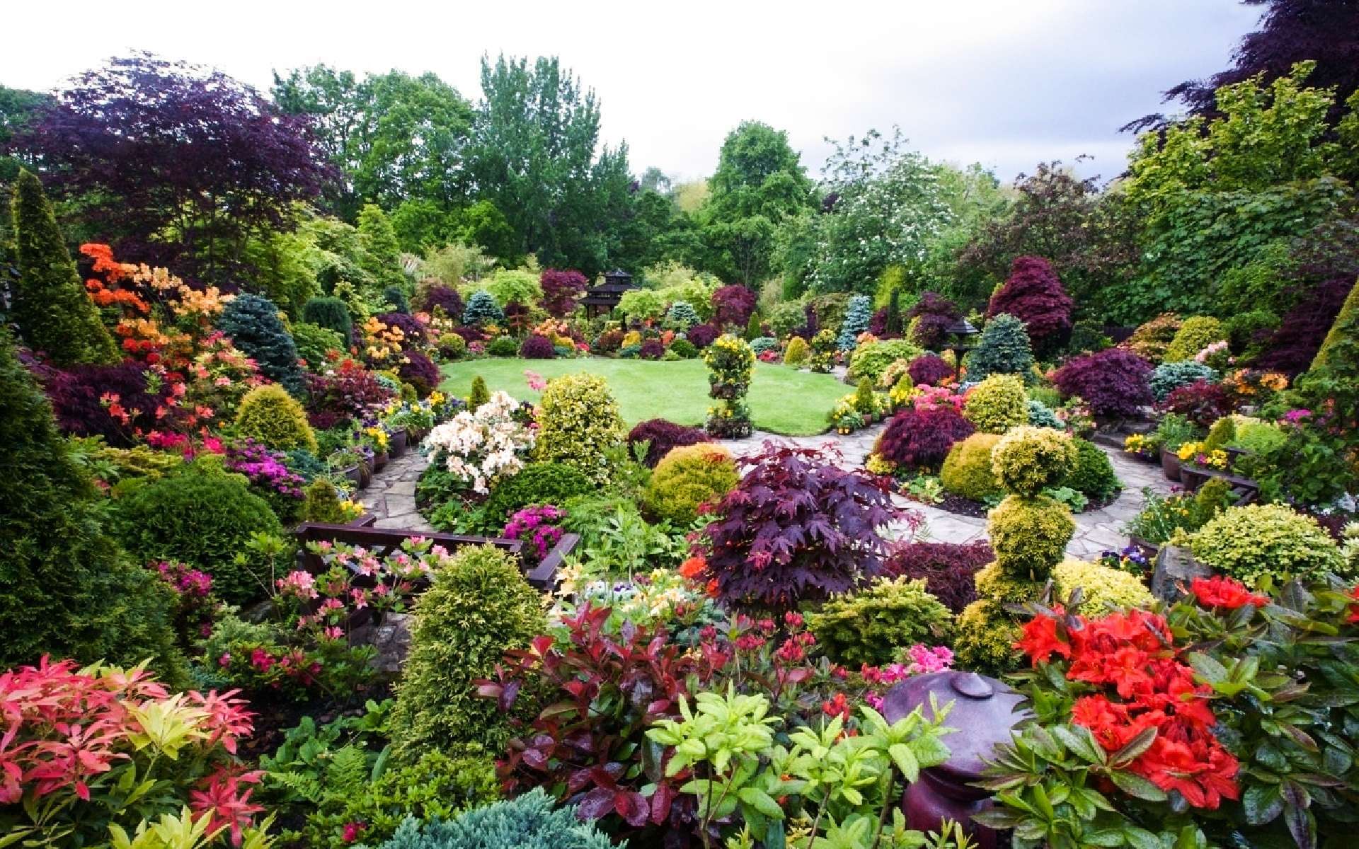 Khu vườn hiện lên rực rỡ nhất vào mùa Xuân bởi nhiều loài cây và hoa cùng nhau khoe sắc. Đỗ Quyên, Tulip, lá Phong Nhật Bản, các loại lá kim xanh và vàng cùng nhiều cây trái đã tạo nên khung cảnh nên thơ giống như tuyệt tác.