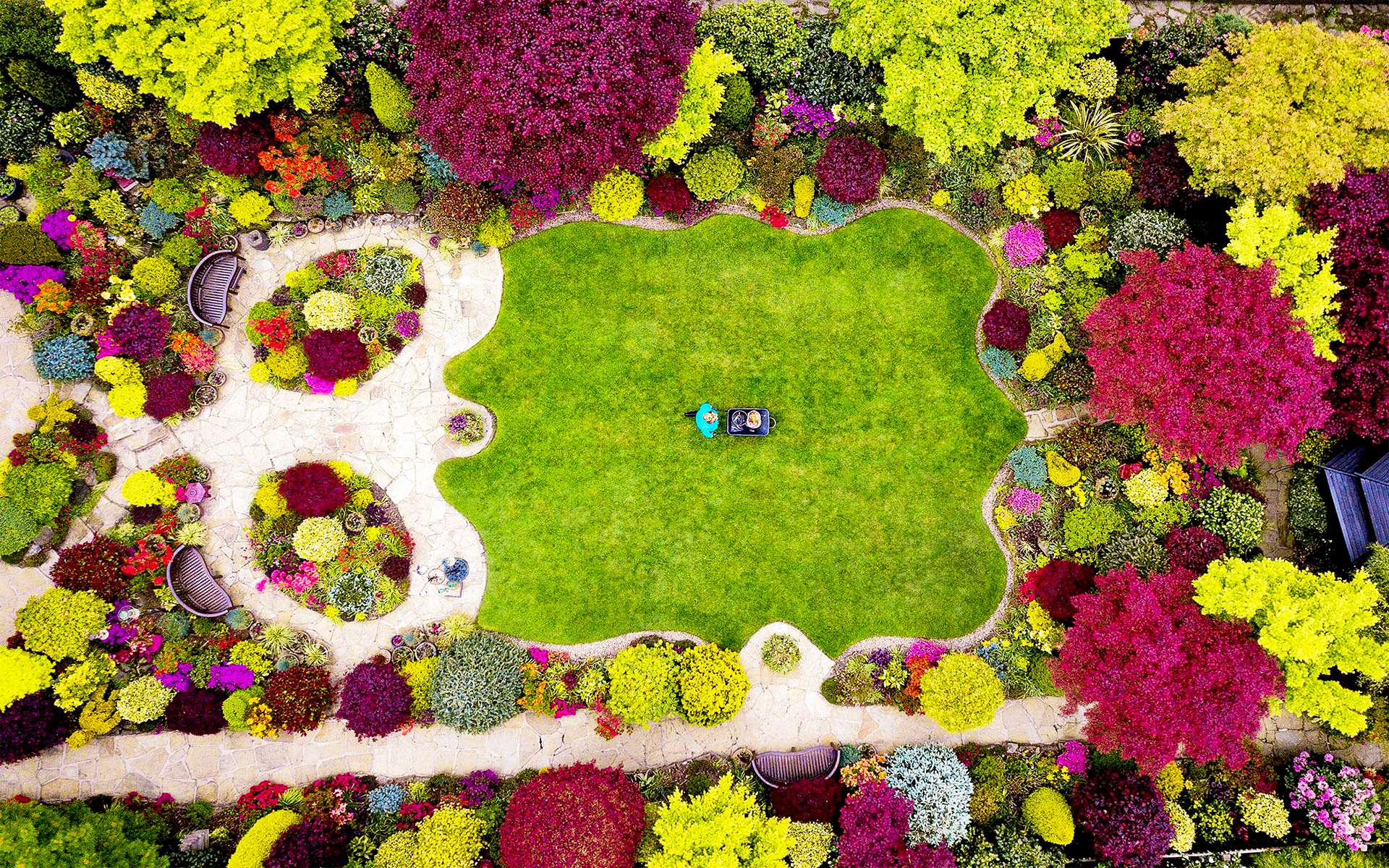 Khu vườn nhìn từ trên cao tựa một bức bích họa đa màu sắc vô cùng cuốn hút
